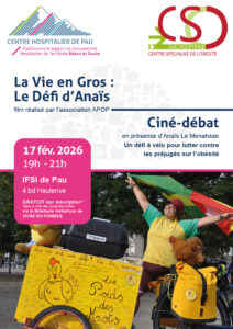 📽️ Pendant les vacances scolaires, le Centre Spécialisé de l’Obésité Sud Aquitain (CSO-SA) vous propose une projection du film LA VIE EN GROS, LE DEFI D’ANAIS en compagnie de son héroïne. Ce documentaire réalisé par l’AFOP retrace son défi un peu fou : rallier Nantes à Lourdes à vélo, soit 800 km en 12 jours 🚴♀️.