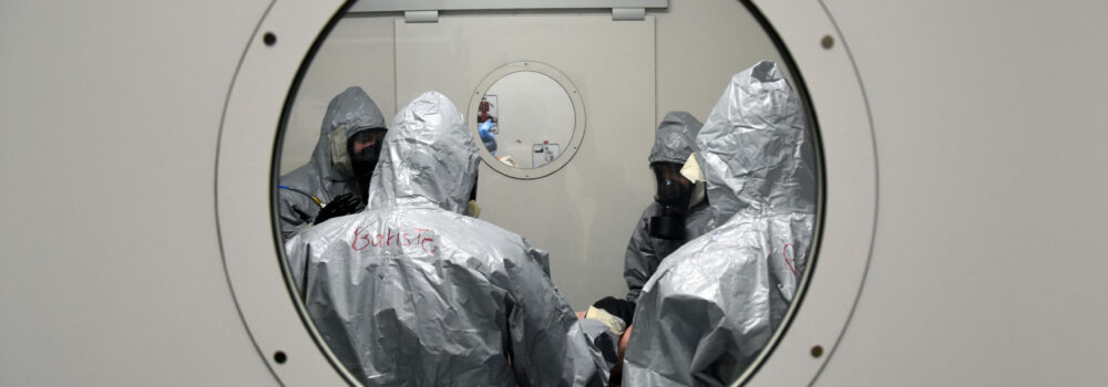 Cette année, l’exercice NRBC s’est donc déroulé sur 4 demi-journées regroupant 4 groupes distincts issus du CH de Pau, des CH d’Oloron et d’Orthez, ainsi que de la Polyclinique Pau Pyrénées. Ce travail commun renforce la coordination inter-hospitalière en cas de crise sanitaire et contribue à maintenir un haut niveau de préparation opérationnelle.